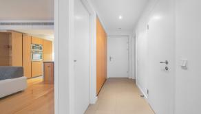 ZARIADENIE: Byt sa prenajíma kompletne ZARIADENÝ. V chodbe sa nachádza veľká vstavaná šatníková skriňa. Obývačka je zariadená sedačkou s konferenčným stolíkom a veľkou taburetkou. Kuchyňa je s obývačkou prepojená barovým pultom s 2 barovými stoličkami. Je kompletne zariadená vstavanou linkou so všetkými spotrebičmi. V špajzi sa nachádza práčka a dostatok odkladacieho priestoru. Spálňa je vybavená manželskou posteľou s dvomi nočnými stolíkmi a veľkou vstavanou skriňou. Kúpeľňa je vybavená toaletou, umývadlom, vaňou a skrinkami so zrkadlom. V byte je ešte jedna samostatná toaleta. Byt je klimatizovaný, termostaty na kúrenie sú v každej izbe. Obidve izby poskytujú nádherný výhľad na Dunaj a promenádu.
