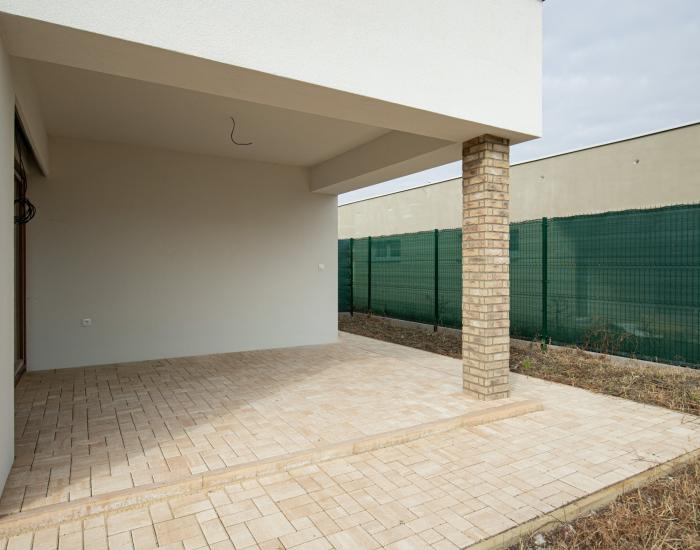 NOVOSTAVBA skolaudovaného rodinného domu s dvoma bytmi, postavený z tehly Wienerberger 25 cm, zateplený polystyrénom 20 cm, okná 6 komorové plastové s 3-sklom a predprípravou na vonkajšie elektrické tienidlá (žalúzie alebo rolety), pod strechou izolácia s minerálnou vlnou 40 cm. Dom napojený na obecný vodovod, elektrinu, žumpu na pozemku (11 m3) predpríprava pre napojenie na kanalizáciu, predpríprava na klimatizáciu. Pozemok oplotený z každej strany, s bránkou a bránou. Parkovanie na pozemku alebo aj priamo pred ním pre 2 autá.