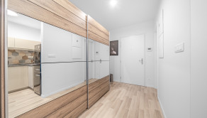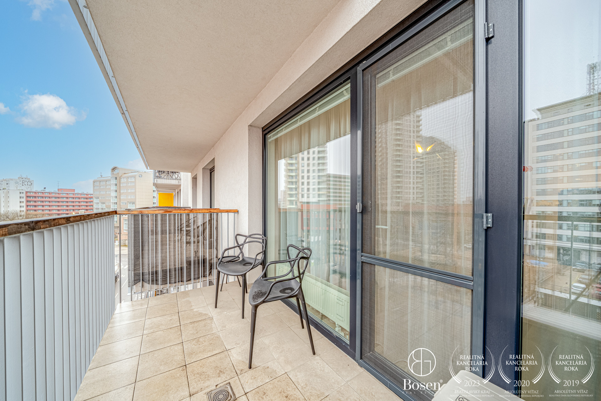 BYT: Celková výmera bytu s príslušenstvom je 49,85 m², z toho byt tvorí 41,51 m², balkón má výmeru 5,95 m² a pivničná kobka 2,39 m². Byt sa nachádza na 4. poschodí zo 6, v 5-ročnej novostavbe s výťahom. Západná orientácia zabezpečuje dostatok denného svetla počas celého dňa, ktoré je zabezpečené aj vďaka veľkej presklenej stene.