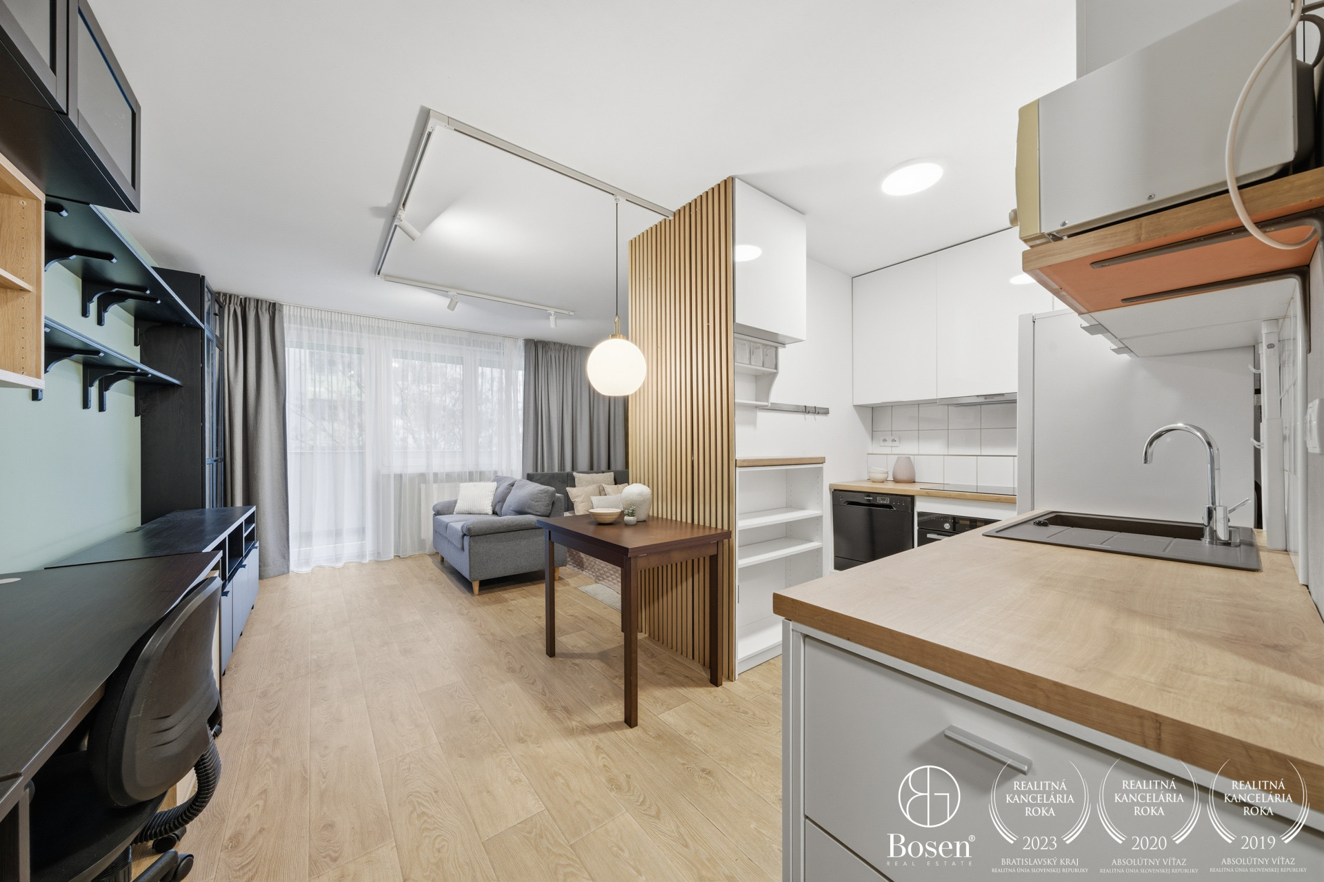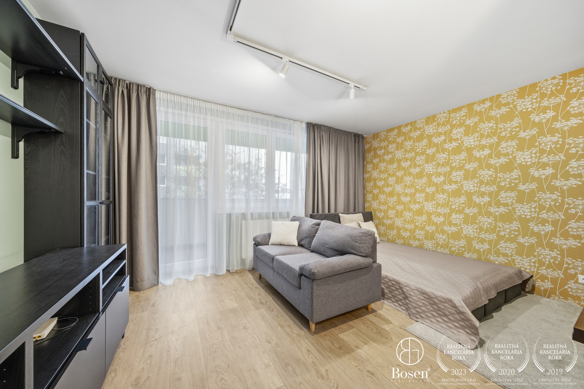 Bosen Group Vám ponúka exkluzívne na prenájom praktický 1 izbový byt s rozlohou 35,20 m2 a veľkým balkónom v Bratislave na Rustaveliho ulici.