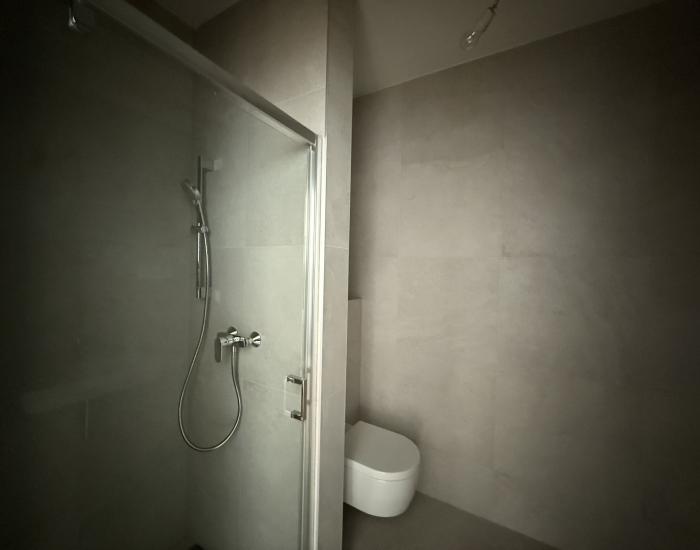 - predsieň s priestorom na šatníkovú skriňu, kúpeľňa so sprchovým kútom a WC, izba s východom na loggiu