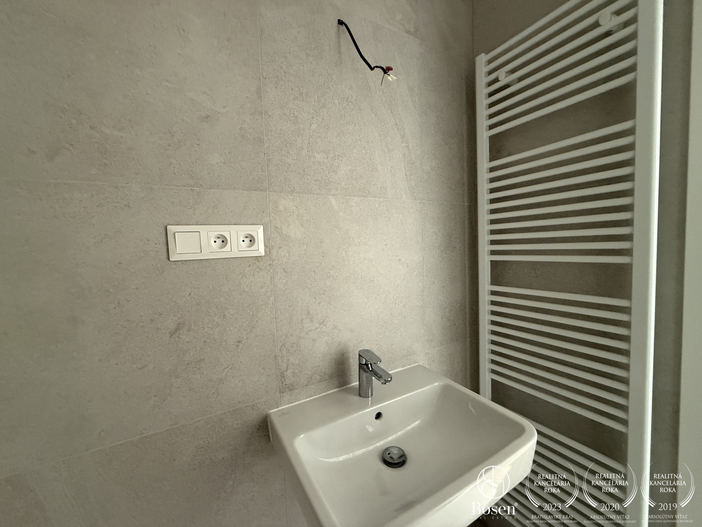 ŠTANDARD: plastové okná izolačné trojsklo, predpríprava na vonkajšie elektrické žalúzie, predpríprava na klimatizáciu, bezpečnostné vstupné dvere, interiérové dvere, laminátové parkety, obklady, dlažba, sanita, WC, videovrátnik