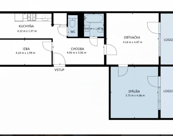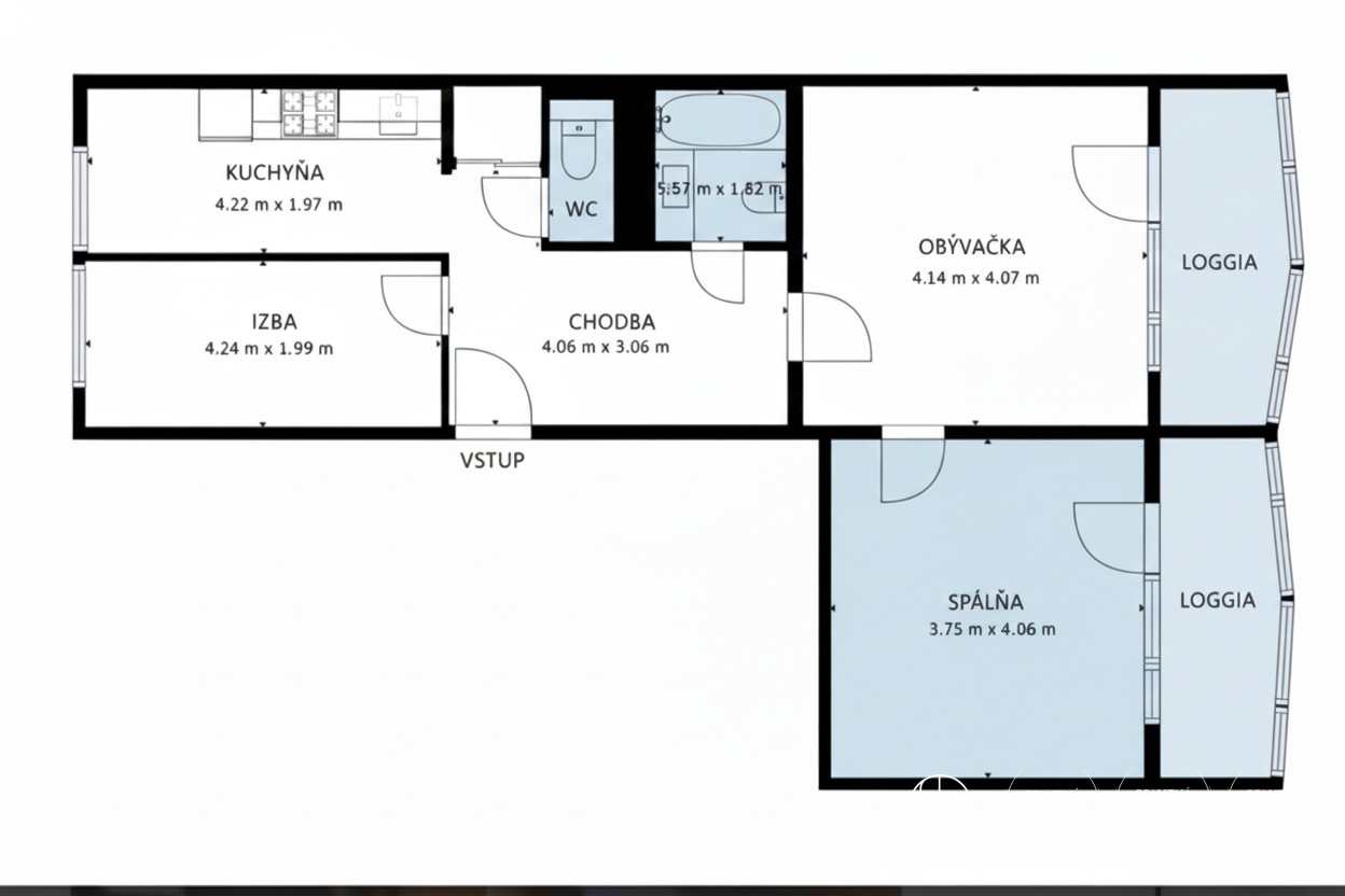 Výmera bytu: 65,18 m² + 2x lóggia po 5,10 m² + pivničná kobka 2,10 m²