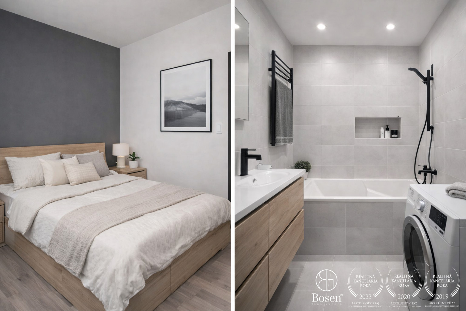 Na fotkách vidíte vizualizáciu, ktorá môže budúcemu majiteľovi dopomôcť k predstave ako si byt prerobí a zariadi. Je to inšpirácia od nás pre vás. Fotografie sú informatívne a môžu sa od reality líšiť.