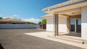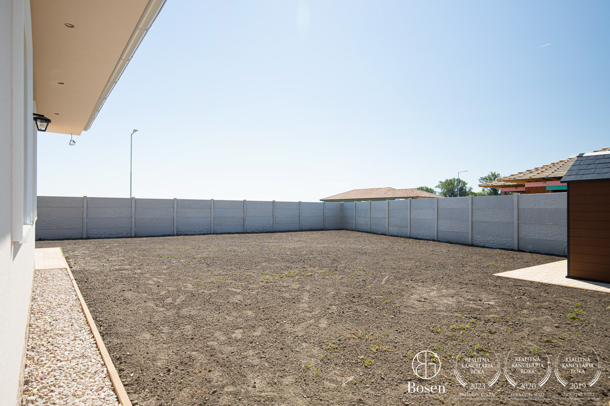 POZEMOK: Nadštandardný 8a pozemok. Ako už bolo v opise je celý ohraničný s dvoma posuvnými bránami a bránkou. Zastavaná plocha domu je 182m2 a zámková dlažba je položená na ďalších 170m2. Zámková dlažba a úprava terénu je tiež zahrnuté v cene. V rohu pozemku sa nachádza záhradný domček. Súčasťou je aj studňa a príprava na zavlažovanie.
