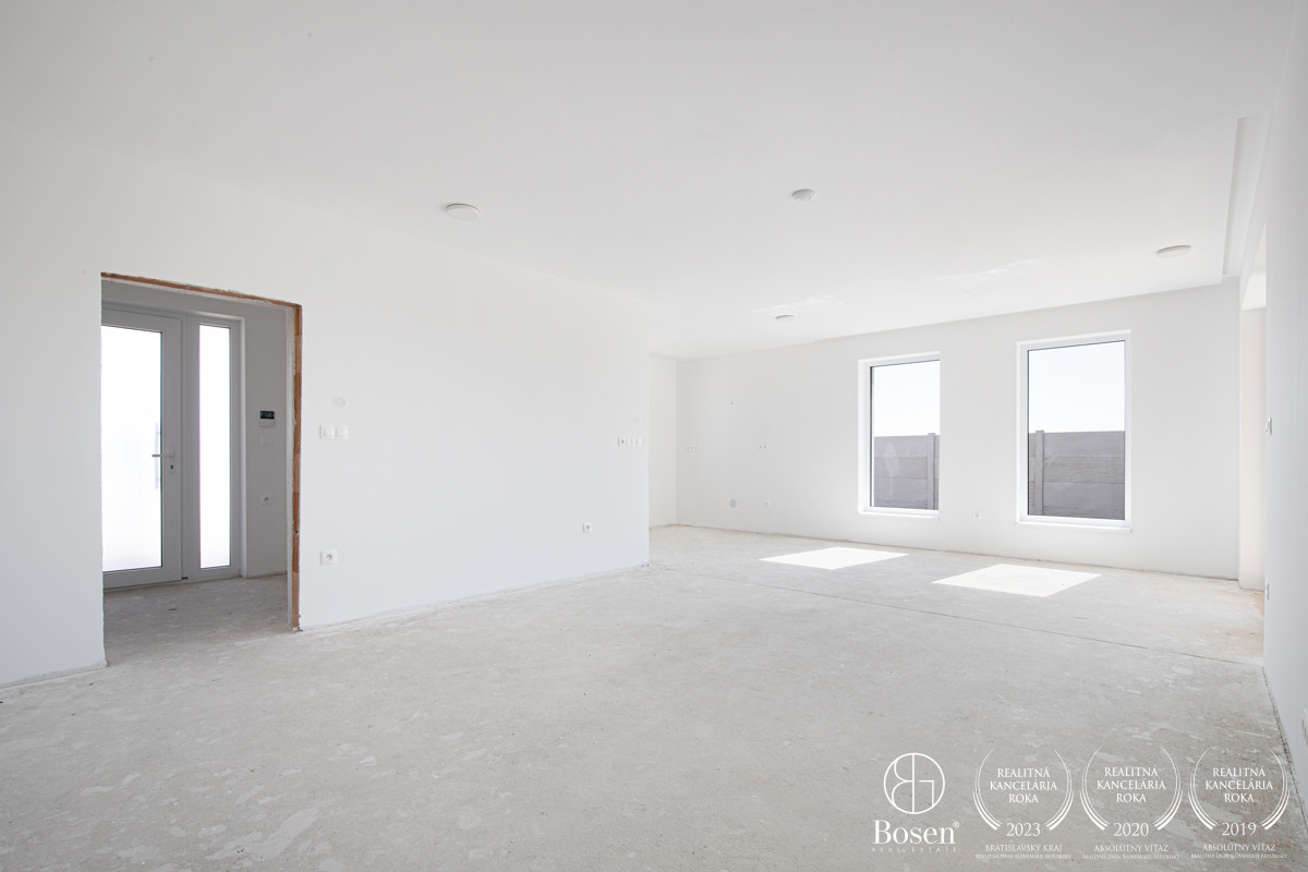 ZARIADENIE: Nehnuteľnosť sa predáva nezariadená v štádiu holodomu s možnosťou dokončenia za dohodnutý príplatok. Za spomenutie stojí použitý materiál, ktorý je vo všetkých smeroch nadštandardný: tehla wienerberger 30, zateplenie 160 cm fasádny polystyrén, okná plastové salamander s izolačným trojsklom, Interiérové dvere Dre Standard 10, parkety EGGER, dlažba a oplotenie Semmelrock, tepelné čerpadlo WIESSMANN (za príplatok znížený o dotáciu), bariérové oplotenie s dvojstranným vzorom BETOP.