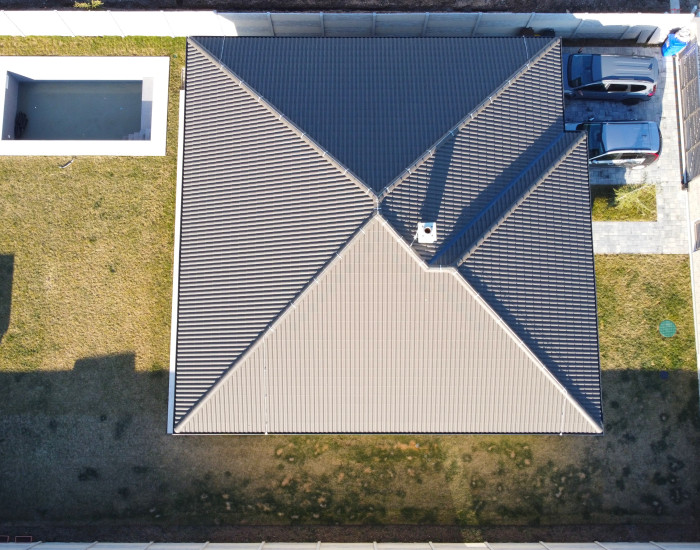 DOM: Zastavaná plocha domu je 132 m2, z toho úžitková plocha je 115 m2. Obvodové múry sú z tehly (Wienerberger 300 mm), vnútorné priečky sú z tehly (Wienerberger 115 mm), väzníkový krov aj s úložným priestorom, strešná krytina (Terran), zateplenie krovu minerálna vlna (Knauf 400), plastové 5-komorové okná a dvere (Salamander), hliníkové vstupné dvere, predpríprava na klimatizáciu v každej izbe, predpríprava na fotovoltaické panely, predpríprava vykurovania pre tepelné čerpadlo, komínová zostava (Schiedel), predpríprava na krb, predpríprava na vonkajšie elektrické žalúzie, predpríprava na alarm, predpríprava na autonabíjačku, predpríprava na kamerový systém, 2x toaleta so vstavaným systémom (Geberit), vypínače a zásuvky (Legrand), vnútorné sadrové omietky (Baumit), anhydritový samonivelačný poter, 2x biely interiérový náter, zámková dlažba na parkovacie státia, chodník a parkovisko zámková dlažba (Premac)multiformát, betónová terasa a možnosť výstavby betónového bazénu 6x3m s protiprúdom. Vykurovanie domu je pomocou podlahového teplovodného systému s rozdelovačom okruhov na podlahové kúrenie.