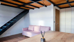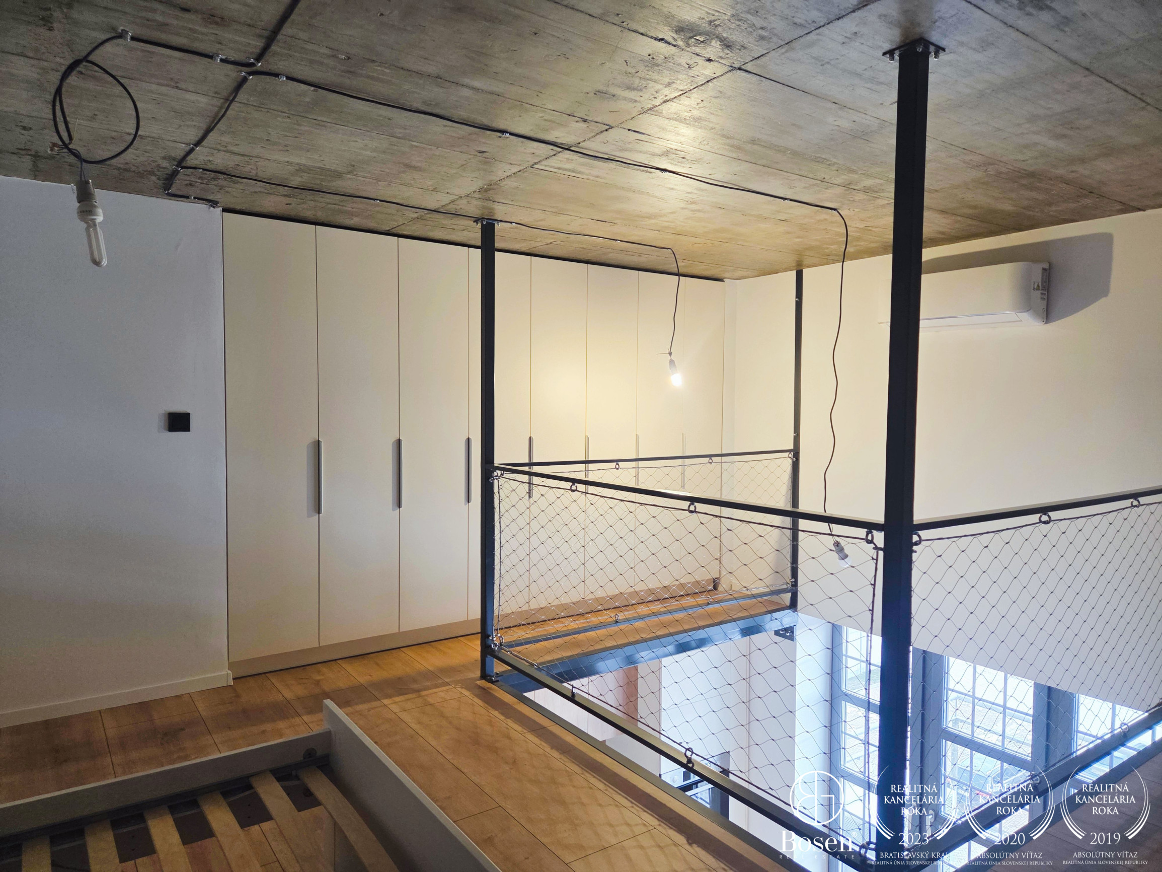 DISPOZÍCIA: Vstupná chodba, obývacia izba prepojená s kuchyňou s východom na balkón na spodnom poschodí bytu. Na vrchnom poschodí sa nachádza spálňa s priestorom na pracovňu.