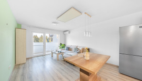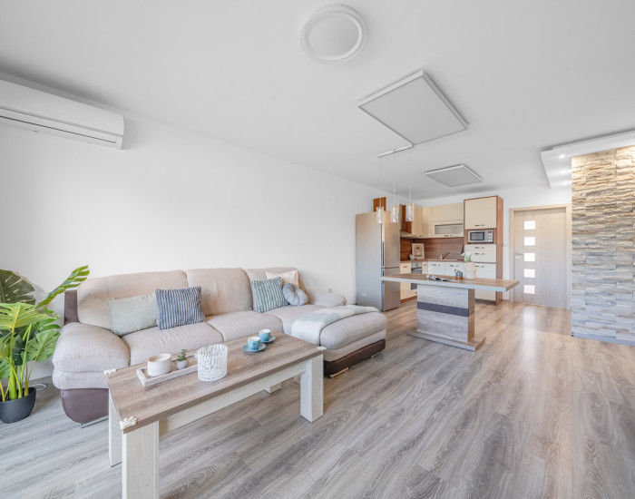 Byt sa predáva čiastočne zariadený, vrátane kvalitnej kuchynskej linky so spotrebičmi, vstavaných skríň a vybraného nábytku, vďaka čomu je pripravený na okamžité nasťahovanie. O komfort počas celého roka sa stará klimatizácia v obývacej izbe a moderný systém vykurovania prostredníctvom infrapanelov na strope.