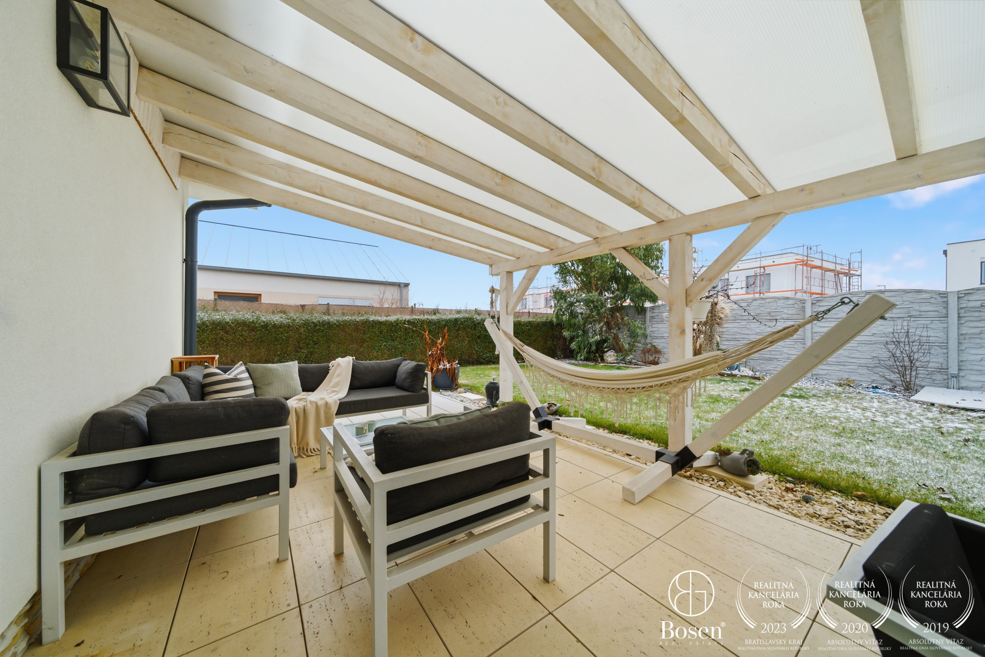 BOSEN GROUP Vám ponúka na predaj moderný 4-izbový rodinný dom – dvojdom s veľkou prestrešenou terasou a priestranným pozemkom v pokojnej časti obce Miloslavov – Alžbetin Dvor, Kráľová ulica. Ideálne bývanie pre rodiny s deťmi, ktoré hľadajú pokoj, súkromie a výbornú dostupnosť do Bratislavy.