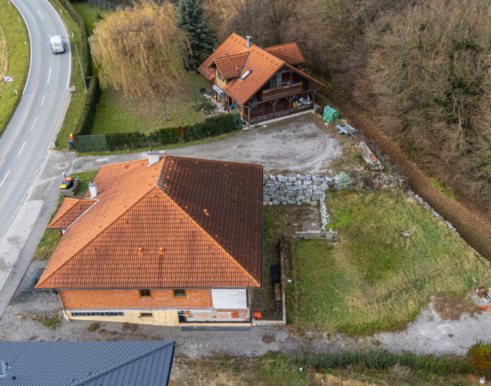 Obývacia izba s jedálenským priestorom očarí krbom, otvoreným stropom a impozantnou galériou, ktorá dodáva interiéru jedinečný architektonický charakter. Súčasťou prízemia je aj spálňa, elegantná kúpeľňa so sprchovým kútom a vaňou, samostatné WC a oddychová miestnosť s prípravou na vytvorenie súkromného wellness – jacuzzi alebo vírivky – s výhľadom do záhrady.
