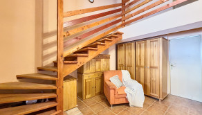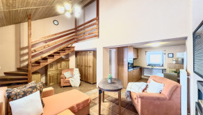 DISPOZÍCIA : Chata je dispozične rozdelená na dennú časť na prízemí a nočnú časť na poschodí. Prízemie tvorí predsieň, priestranná obývacia izba spojená s kuchyňou, jedáleň, kúpeľňa s toaletou, technická miestnosť a výstup na terasu. Na poschodie vedú drevené schody, kde sa nachádzajú dve samostatné spálne. Izby sú vybavené klimatizáciou, ktorú oceníte najmä v letnom období.