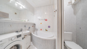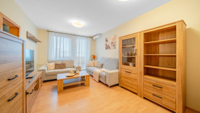 ZARIADENIE: Byt sa prenajíma kompletne zariadený a ponúka naozaj veľa úložného priestoru. Vo vstupnej chodbe sa nachádzajú vstavané skrine po celej dĺžke steny. Obývacia izba je vybavená dvoma gaučmi, konferenčným stolíkom, TV, skrinkou pod TV a ďalším obývačkovým nábytkom. Z obývacej izby je výstup na loggiu. V kúpeľni sa nachádza vaňa, práčka, umývadlo so skrinkou a zrkadlo. Hlavná spálňa ponúka manželskú posteľ s nočnými stolíkmi a dostatok úložného priestoru v skrini, čím vytvára pokojné a pohodlné prostredie na oddych. Druhá izba je zariadená ako multifunkčný priestor, vhodný ako pracovňa alebo detská izba. Je vybavená dvoma písacími stolmi, úložnými poličkami a rozkladacou posteľou. Kuchyňa disponuje vstavanou kuchynskou linkou so spotrebičmi – plynový sporák, elektrická rúra, digestor, chladnička s mrazničkou a mikrovlnná rúra. Súčasťou vybavenia sú aj základné kuchynské potreby (poháre, taniere, príbory).