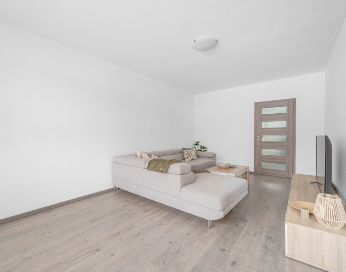 DISPOZÍCIA: Zo vstupnej chodby sa plynule vstupuje do svetlej obývacej časti, z ktorej je priamy prístup do samostatnej kuchyne a jednej nepriechodnej izby. Chodba zároveň vedie do oddelenej nočnej časti bytu (súkromnej zóny), kde sa nachádzajú ďalšie dve nepriechodné izby, samostatná toaleta, kúpeľňa s vaňou aj sprchovým kútom a dve praktické technické miestnosti.