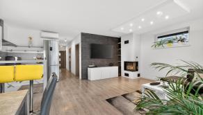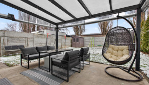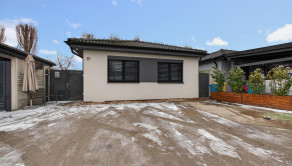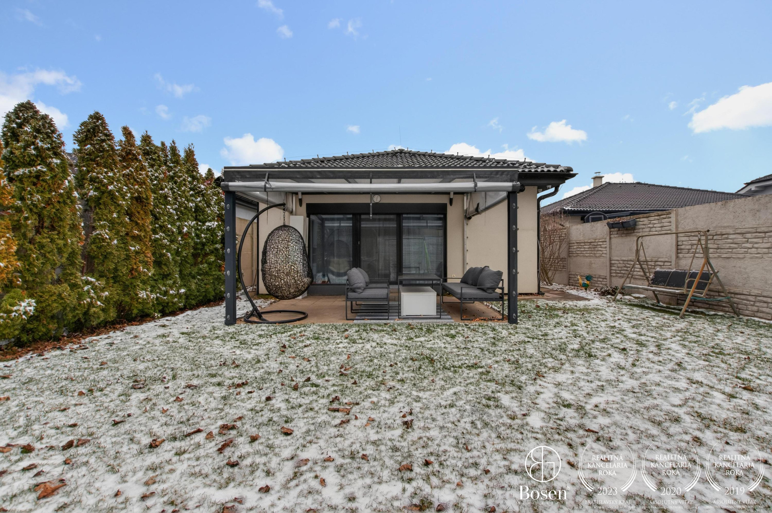 RODINNÝ DOM: novostavba kolaudovaná v roku 2018, samostatne stojaci bungalov s jedným nadzemným podlažím. Zastavaná plocha domu je 116 m2 a podlahová plocha domu je 90,67 m2. Rodinný dom je postavený z kvalitných stavebných materiálov. Obvodové murivo a vnútorné priečky YTONG, strešná krytina - betónová škridla, zateplenie rodinného domu - obvodové murivo polystyrén 15 cm, strecha minerálna vlna, teplovodné plynové podlahové kúrenie, plynový kotol, plastové okná s izolačným 3 sklom, plastové vstupné dvere, vonkajšie žalúzie, krb, klimatizácia, kamerový systém, odkladací priestor na povale, oplotenie, krytá terasa, hliníková pergola, záhradný domček, automatické závlahy, vonkajšie parkovacie státia. Rodinný dom je napojený na tieto inžinierske siete: elektrika, kanalizácia, voda, plyn, optický internet.