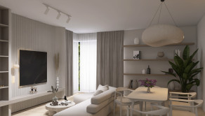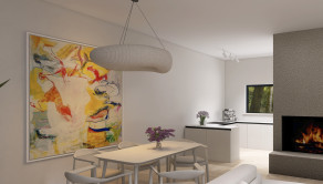 ● interiér – holodom - obvodové steny a priečky, dokončené všetky rozvody elektriky, vody, odpadu, tepelné čerpadlo, podlahové kúrenie, omietky, 1x biela maľovka, predpríprava na exteriérové žaluzie, krb a klimatizáciu.