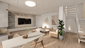 DOM RD2: Jedná sa o novostavbu 2+ podlažného murovaného rodinného domu, kaskádovito osadeného na pozemku s panoramatickým výhľadom na centrum mesta. Úžitková plocha domu je 149,28 m². Rodinný dom disponuje modernými a ekologickými technickými riešeniami ako je elektrické podlahové kúrenie, rekuperačná jednotka v každej obytnej miestnosti, príprava na krb, príprava na alarm. IS - elektrina, kanalizácia, voda,optika. Kolaudácia rodinného domu je plánovaná na 2Q/2026.