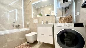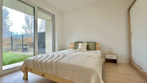 BYT: Byt má výmeru 67 m2 a predzáhradka 67 m2. Nachádza sa na prízemí novostavby bytového domu. V byte je vlastný kotol na ohrev vody, elektrické podlahové kúrenie, elektrické exteriérové žalúzie, klimatizácia. Prístup na predzáhradku je vynikajúco riešený bočnou bráničkou z parkoviska. V záhradke sú nasadené okrasné kry a trávnik je napojený na závlahu. Súčasťou vybavenia je aj kosačka.
