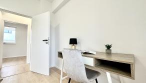 ZARIADNIE: Byt je kompletne zariadený - šatníkova zostava vo vstupnej chodbe, kuchynská linka so vstavanými spotrebičmi ( umývačka riadu, indukčná varná doska, digestor, elektrická rúra, chladnička s mrazničkou), jedálenský stôl so stoličkami, konferenčný stolík, sedačka, TV, manželská posteľ, písací stôl so stoličkou, vysávač. Podľa potreby klienta kompletne zariadená izba ( posteľ s matracom, skriňa ).