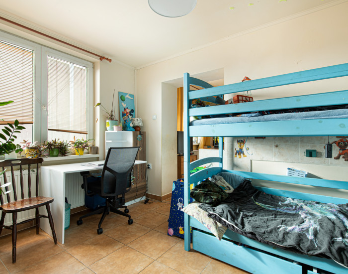 Na poschodí sa nachádza kúpeľňa s vaňou a WC, tri samostatné izby, z toho jedna s balkónom, a miestnosť pripravená na kuchyňu. Poschodie je dispozične riešené tak, že je možné vytvoriť samostatnú bytovú jednotku so samostatným vchodom a vlastnou predsieňou.