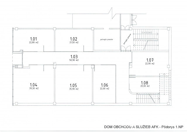 obchodný priestor na prízemí 1.08 o výmere 20 m2 - PASÁŽ.