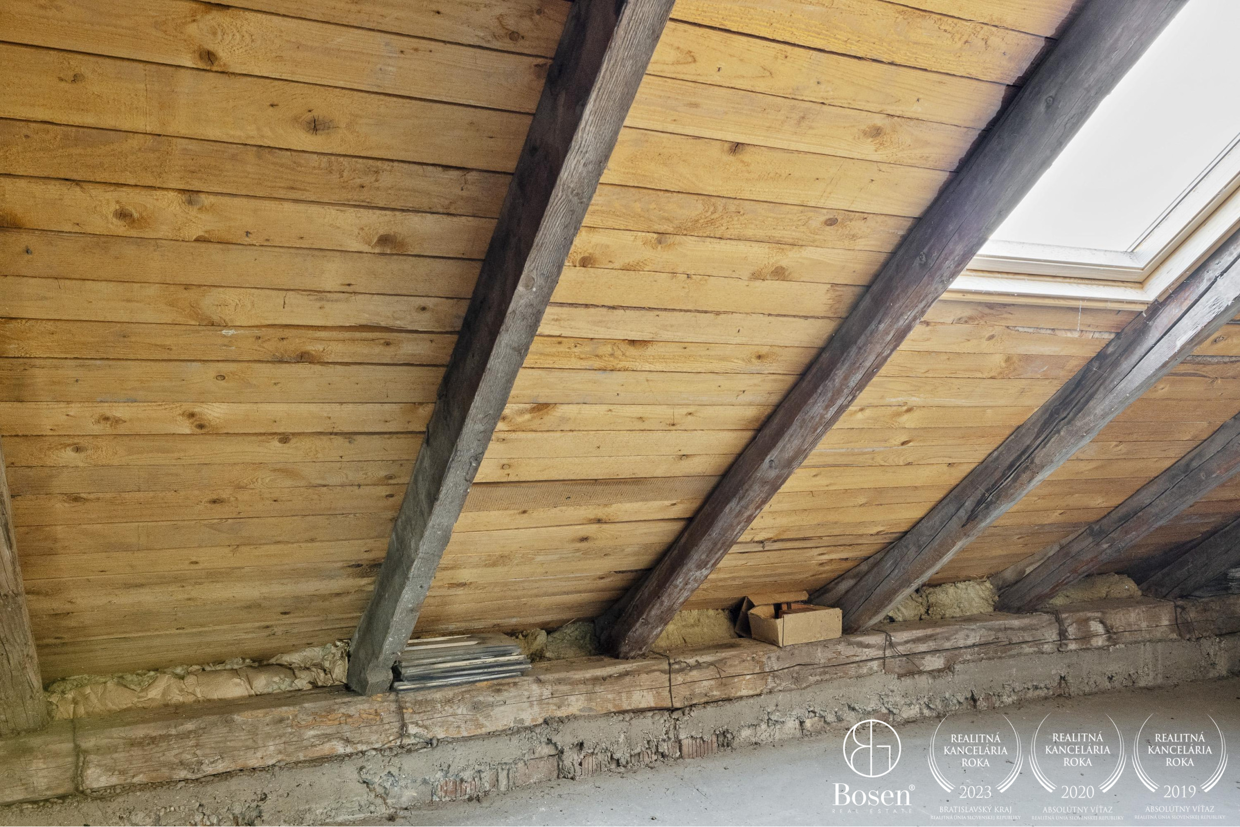 Podkrovie – 1 izba, čiastočne obývateľné, zvyšok slúži ako povala (možnosť prerobiť na izby)