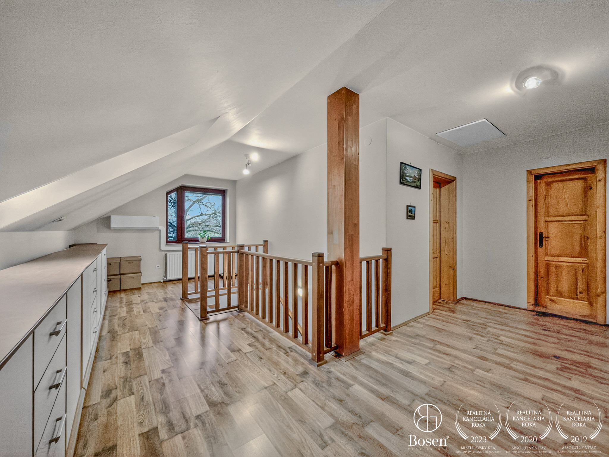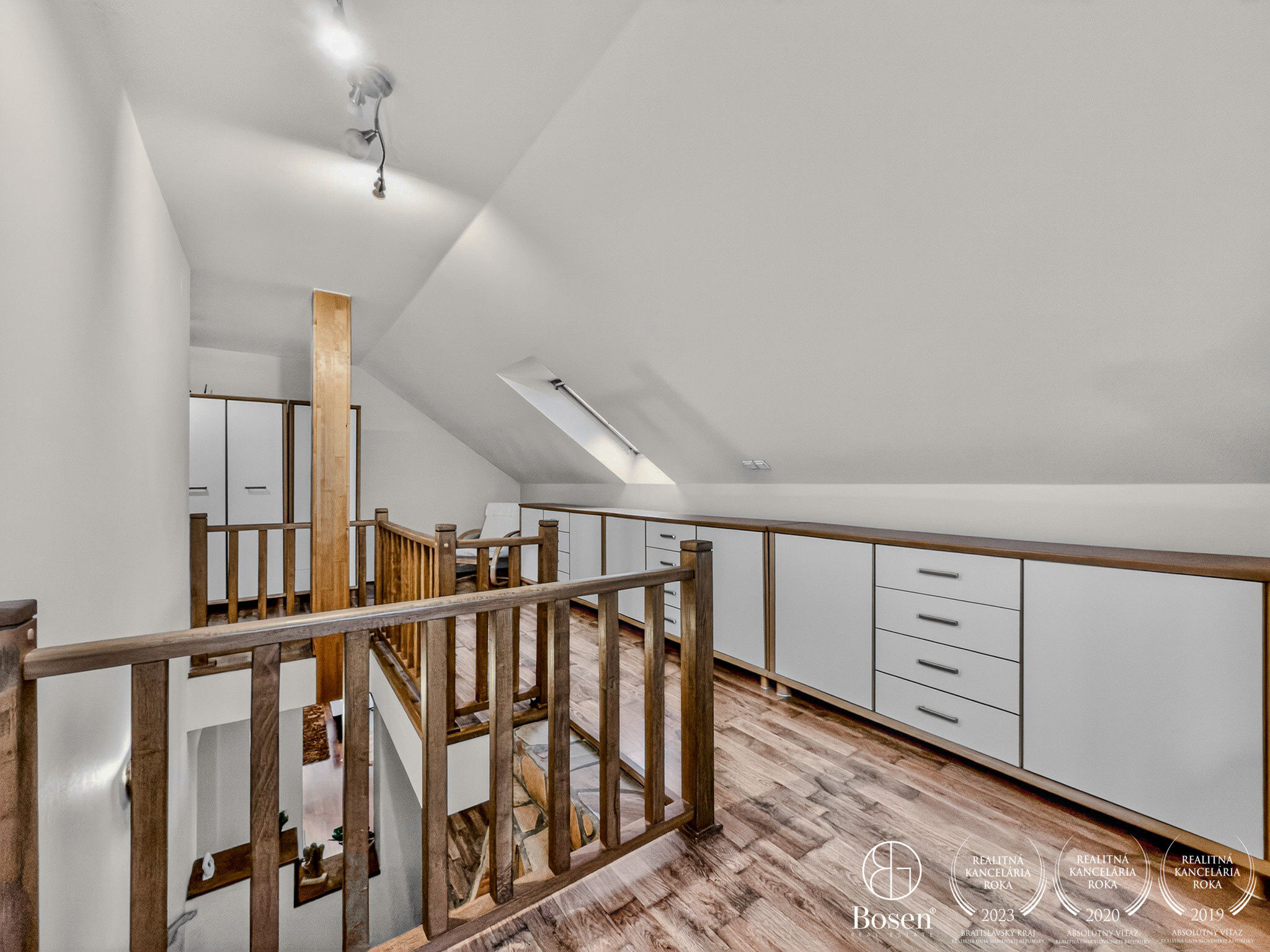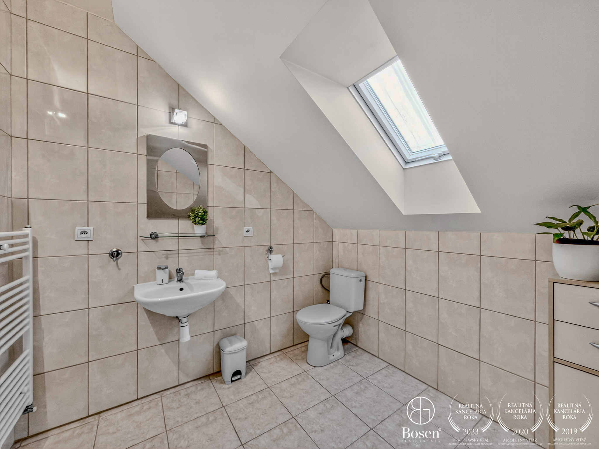 DISPOZÍCIA: Rodinný dom je dispozične veľmi dobre riešený – praktický, útulný a premyslený. Denná časť sa nachádza na prízemí a nočná časti na poschodí, kde sú vkusne vytvorené podkrovné izby s maximálnym komfortom. Dom je čiastočne podpivničený - v suteréne sa nachádzajú dve miestnosti s celkovou rozlohou 20 m2 v technická miestnost a skladový priestor.