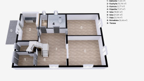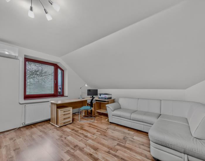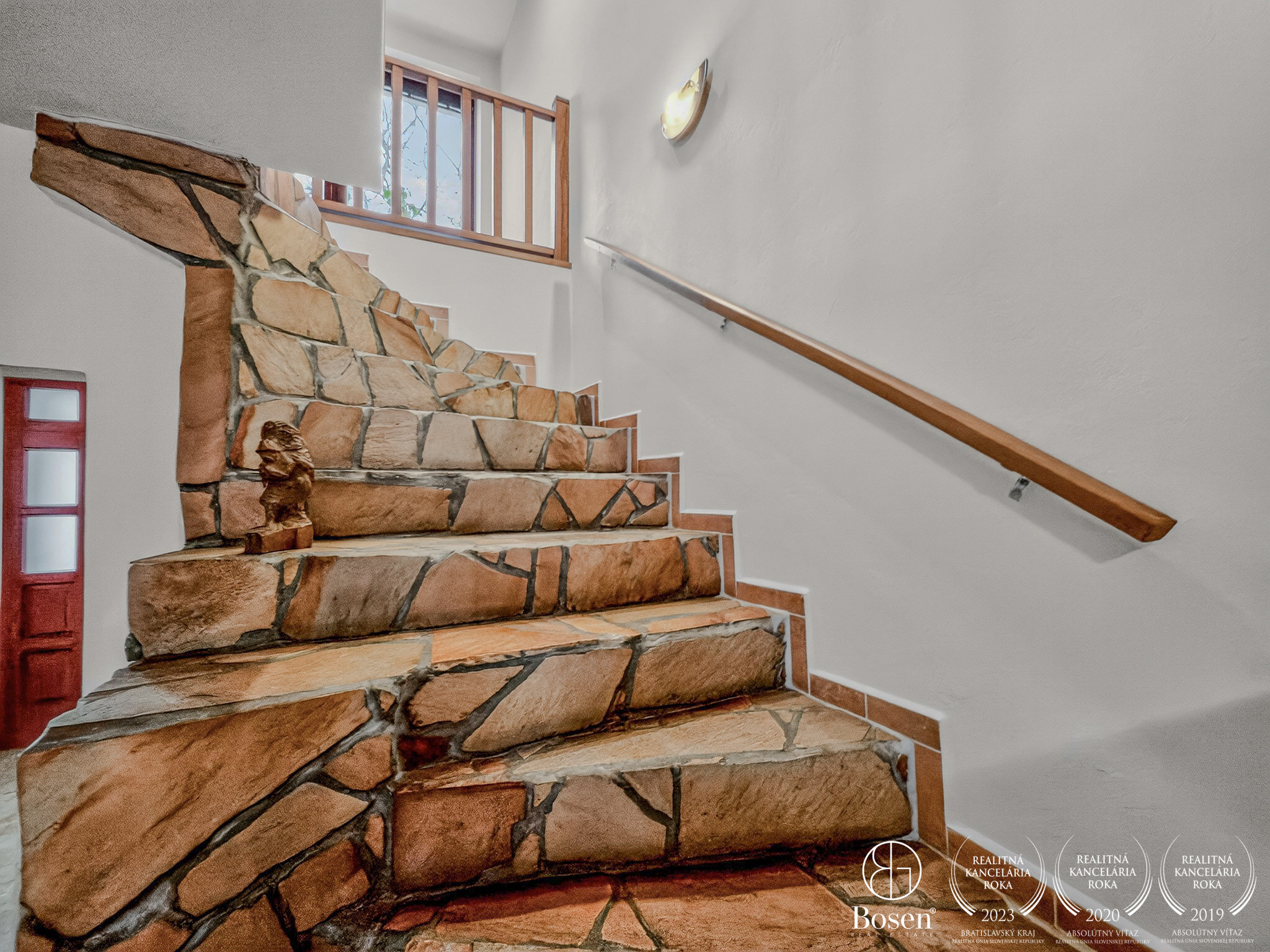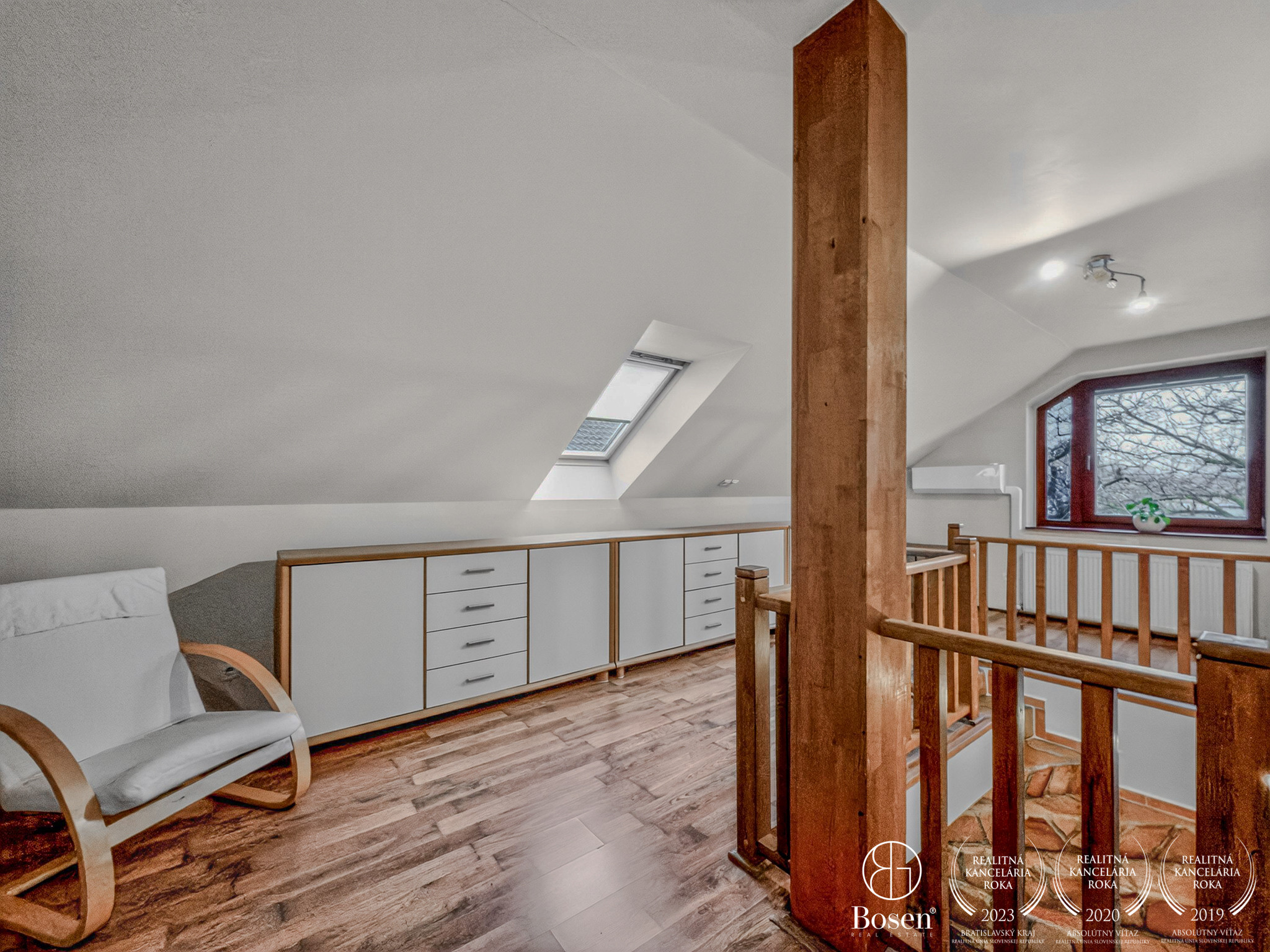DISPOZÍCIA: Rodinný dom je dispozične veľmi dobre riešený – praktický, útulný a premyslený. Denná časť sa nachádza na prízemí a nočná časti na poschodí, kde sú vkusne vytvorené podkrovné izby s maximálnym komfortom. Dom je čiastočne podpivničený - v suteréne sa nachádzajú dve miestnosti s celkovou rozlohou 20 m2 v technická miestnost a skladový priestor.