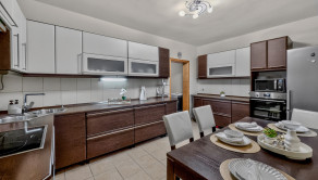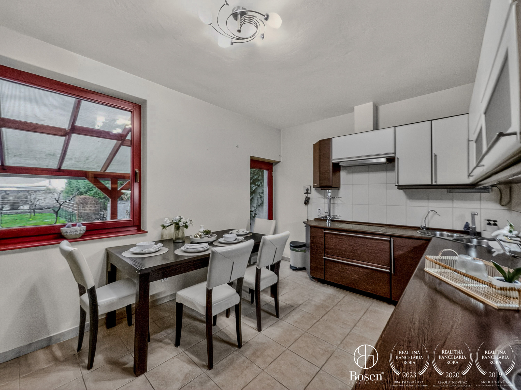 RODINNÝ DOM: Je ideálnou voľbou pre tých, ktorí hľadajú komfortné bývanie bez kompromisov s možnosťou okamžitého nasťahovania. Pôvodný dom prešiel v roku 2006 kompletnou renováciou vrátane prestavby, prístavby a nadstavby. Pri renovácii boli použité kvalitné materiály: pálená škridlová krytina, tehlové murivo, eurookná a kvalitné vchodové dvere. Dom je zateplený s 10cm kamennou minerálnou vlnou s novou fasádou a od základov dôkladne odizolovaný. Po kompletnej rekonštrukcii prístavby a nadstavby bol dom v roku 2008 skolaudovaný, vďaka čomu je považovaný za novostavbu. Ponúka všetko, čo potrebujete pre pohodlné rodinné bývanie s priestrannou prízemnou častou a krásnym podkrovím. Celková rozloha pozemku je 604 m². Okrem rodinného domu sa na pozemku nachádza priestranná terasa s výhľadom na vlastnú veľmi vkusne upravenú záhradu, ktorá je ideálnym miestom na relax najmä letné mesiace. Na pozemku je k dispozícii aj prístrešok na parkovanie.