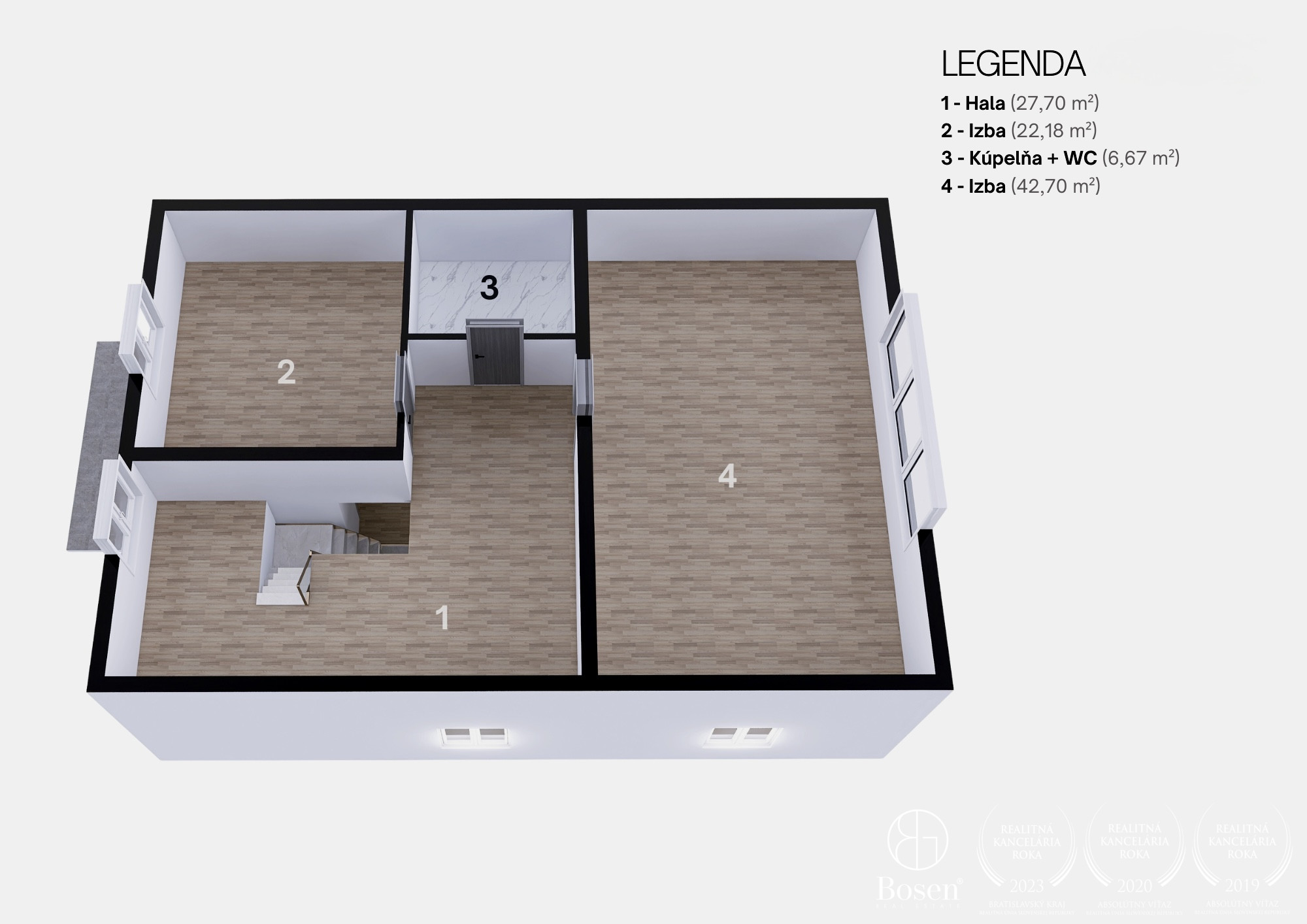 Realitná kancelária BOSEN GROUP je členom Realitnej únie SR a riadi sa jej Realitným kódexom. Uvedená cena je konečná, zahŕňa províziu realitnej kancelárie, právny servis zabezpečovaný advokátskou kanceláriou, úhradu základného správneho poplatku na katastri, poradenstvo k prevodu nehnuteľností a bezplatnú ponuku financovania prostredníctvom hypoték.
