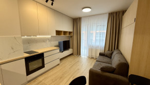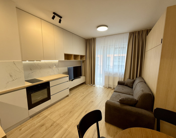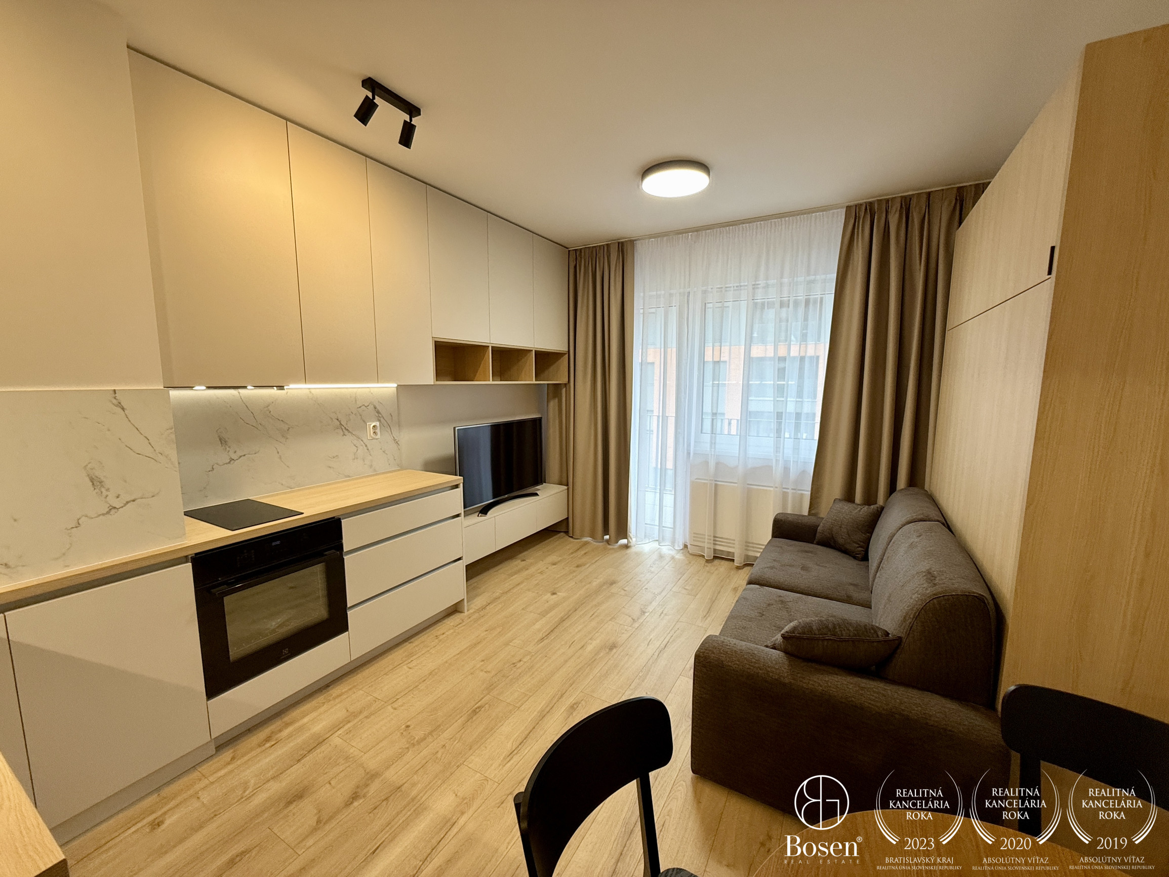 ZARIADENIE: Byt sa prenajíma kompletne zariadený - kuchynská linka s dostatkom úložného priestoru, chladnička s mrazničkou, umývačka riadu, indukčná varná doska, digestor. Byt takisto disponuje vstavaným nábytkom na mieru - vstavané skrine, plnohodnotná sklápacia posteľ, gauč, TV, jedálenský stôl so stoličkami, práčka so sušičkou v kúpeľni.