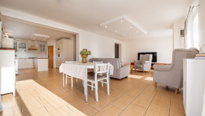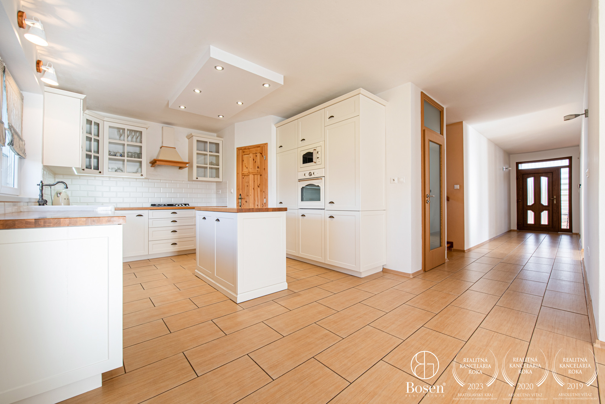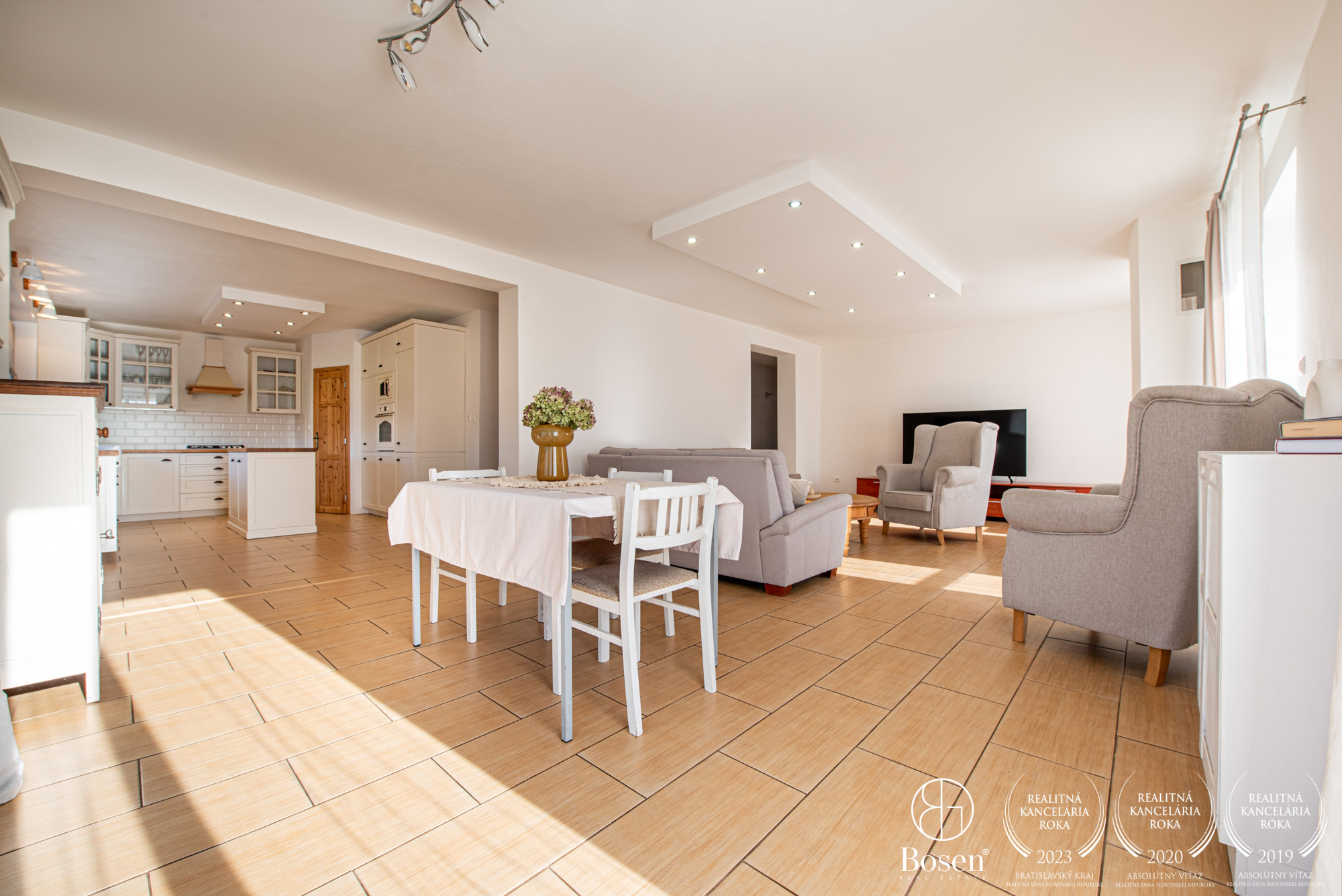 DOM: Úžitková plocha domu 265m2. K domu prislúcha garáž s výmerou 20m2 a terasa o výmere 110m2. Dom je tehlový a predáva sa plne zariadený. Vykurovanie v celom dome je podlahové. Zdrojom tepla je plynový kotol, ktorý bol menený r. 2021. Dom bol kolaudovaný v roku 2012. Na prízemí je keramická dlažba, na poschodí plávajúca podlaha, v celom dome drevenné dvere, schodisko z masívu. V roku 2022 prešiel rekonštrukciou - menené komplet rozvody, elektroinštalácia, kuchyňa. Dom je zateplený.