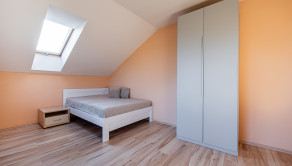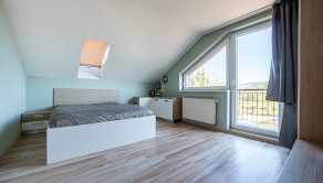 2. NP - podkrovie: 4 x nepriechodná izba, kúpeľňa + WC, chodba šatník a dva balkóny.