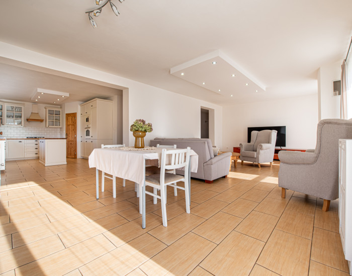 DOM: Úžitková plocha domu 265m2. K domu prislúcha garáž s výmerou 20m2 a terasa o výmere 110m2. Dom je tehlový a predáva sa plne zariadený. Vykurovanie v celom dome je podlahové. Zdrojom tepla je plynový kotol, ktorý bol menený r. 2021. Dom bol kolaudovaný v roku 2012. Na prízemí je keramická dlažba, na poschodí plávajúca podlaha, v celom dome drevenné dvere, schodisko z masívu. V roku 2022 prešiel rekonštrukciou - menené komplet rozvody, elektroinštalácia, kuchyňa. Dom je zateplený.