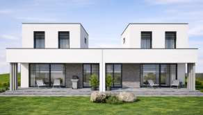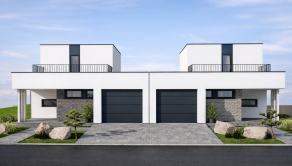 DOM: Úžitková plocha domu 128m2. Rodinný dom je súčasťou dvojdomu. Dvojdom je navrhnutý tak, aby každý dom poskytoval maximálne súkromie a komfort. Každá jednotka má vlastné obvodové murivo Ytong (300 mm) a od druhej časti je oddelená styrodurom, čo eliminuje prenos hluku. Dom sa predáva v štádiu holodom s podlahovým kúrením, vydláždenou terasou, parkovacím státím pre dve autá a garážou.