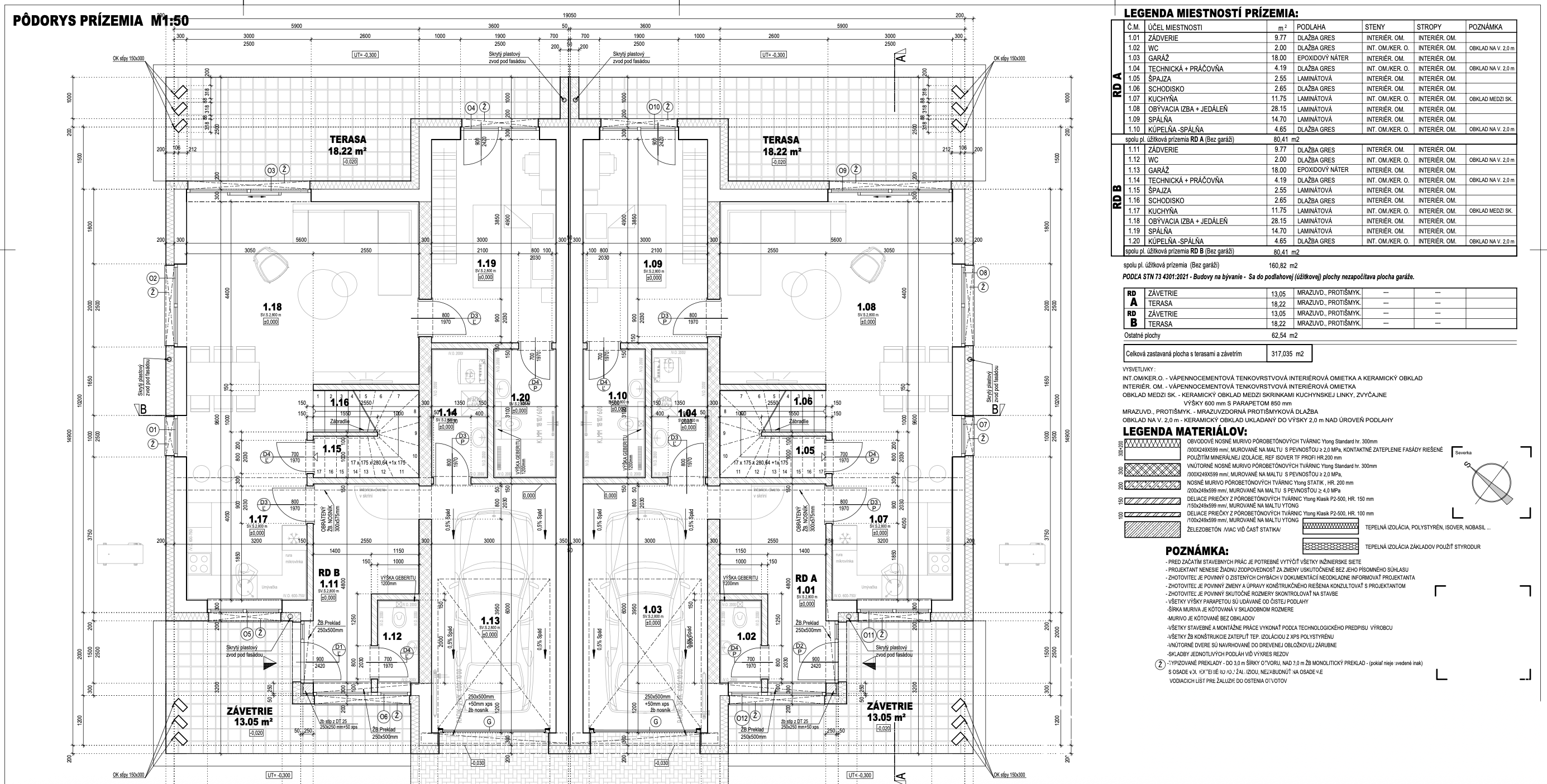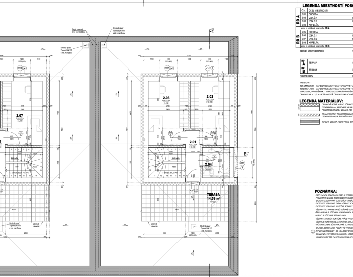 DISPOZÍCIA: Dom pozostáva zo vstupnej chodby, obývačky spojenej s kuchyňou a jedálňou, spálňa s výstupom na terasu a vlastnou kúpelňou. Zo vstupnej chodby sa dostaneme do garáže z ktorej je prístup do technickej miestnosti. Na druhom poschodí sa nachádzajú dve samostatné izby, kúpeľňa spojená s WC a terasa o výmere 15m2.