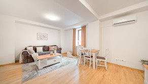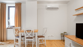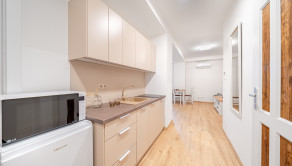 ZARIADENIE: Byt sa prenajíma kompletne zariadený. Spálňa disponuje manželskou posteľou s matracmi, nočnými stolíkmi a šatníkovou skriňou. Kuchyňa je vybavená chladničkou s mrazničkou, mikrovlnnou rúrou a indukčnou varnou doskou, pričom súčasťou je aj základné kuchynské vybavenie (poháre, taniere, príbory). V kúpeľni sa nachádza skrinka s umývadlom, zrkadlo, sprchový kút, zabudovaný fén a sušič na ruky. Obývacia izba ponúka rozkladací gauč, konferenčný stolík, TV so skrinkou, koberec, poličky na knihy a jedálenský stôl so stoličkami.