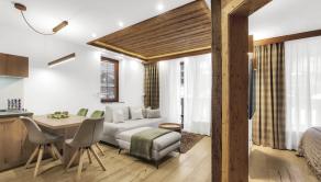 Realitná kancelária Bosen Group Vám exkluzívne ponúka na predaj 2 izbový apartmán s terasou len 200 m od lanoviek lyžiarskeho strediska v komplexe Hotel Kukučka&Rezidencie **** v Tatranskej Lomnici