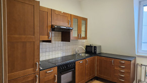 Byt sa prenajíma čiastočne zariadený. Súčasťou vybavenia je klimatizácia, kuchynská linka so sklokeramickou varnou doskou, elektrickou rúrou, chladničkou, drezom, digestorom a mikrovlnnou rúrou. K dispozícii je jedálenský stôl so 4 stoličkami, skrine a polička. V prípade potreby je možné zabezpečiť aj posteľ. Optický internet je zahrnutý v cene prenájmu.