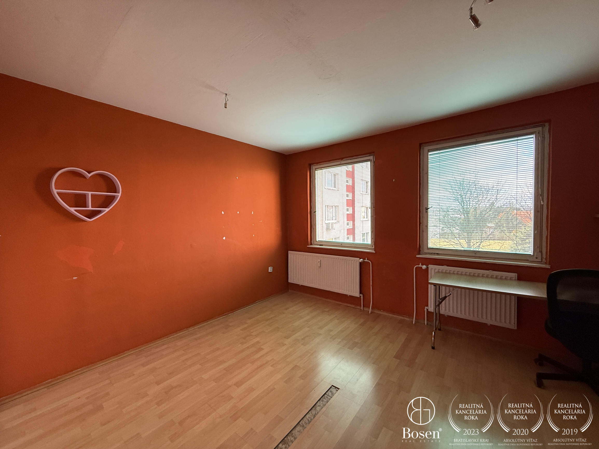 Bosen Group ponúka na predaj 4 izbový byt s dobrou dispozíciou. Nachádza sa vo Vrakuni na tichej a kľudnej ulici Vrbová. Náchádza sa na 2. podlaží z 8. s výťahom. Celková výmera je 83,2 m2, z čoho je loggia 4 m2 a pivnica 1,5 m2. Byt je v pôvodnom stave a je vhodný na rekonštrukciu podľa predstáv. Jedna priečka bola v izbe vybúraná.