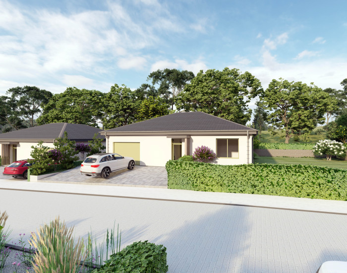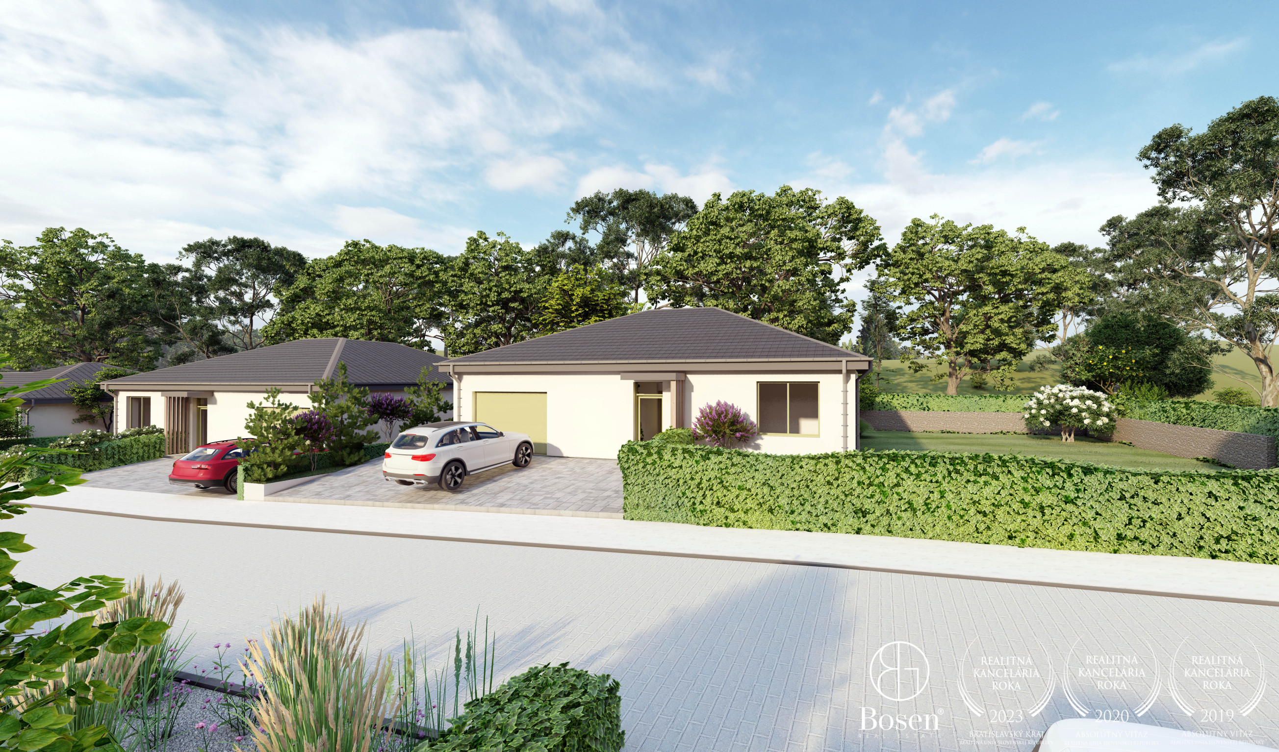 SAMOSTATNE STOJACI RODINNÝ DOM: v ponuke sú 2 prízemné 4 izbové rodinné domy. Domy budú postavené do štádia "štandard"- vymaľované steny, osadené vypínače, zásuvky, interiérové dvere a zárubne, obklady a sanita v kúpeľniach vrátane dokončeného exteriéru - oplotenie, brána a vybudované parkovacie miesta pred domom. Farebné prevedenie štandardu je voliteľné. V cene je predpríprava na vonkajšie elektrické žalúzie, klimatizácia, alarm a fotovoltiku. Vykurovanie bude zabezpečené tepelným čerpadlom. Domy budú napojené na elektrinu, vodu, kanalizáciu a optickú sieť. Projekt je v štádiu prípravy výstavby - je vydané stavebné povolenie. Predpokladaný termín zahájenia výstavby rodinných domov je jarné obdobie 2026 a predpokladaný termín dokončenia je v roku 2027.