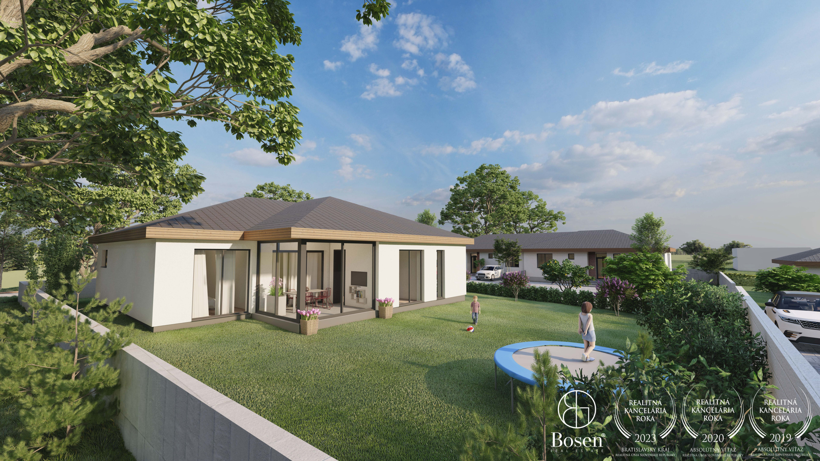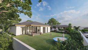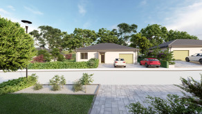 SAMOSTATNE STOJACI RODINNÝ DOM: v ponuke sú 2 prízemné 4 izbové rodinné domy. Domy budú postavené do štádia "štandard"- vymaľované steny, osadené vypínače, zásuvky, interiérové dvere a zárubne, obklady a sanita v kúpeľniach vrátane dokončeného exteriéru - oplotenie, brána a vybudované parkovacie miesta pred domom. Farebné prevedenie štandardu je voliteľné. V cene je predpríprava na vonkajšie elektrické žalúzie, klimatizácia, alarm a fotovoltiku. Vykurovanie bude zabezpečené tepelným čerpadlom. Domy budú napojené na elektrinu, vodu, kanalizáciu a optickú sieť. Projekt je v štádiu prípravy výstavby - je vydané stavebné povolenie. Predpokladaný termín zahájenia výstavby rodinných domov je jarné obdobie 2026 a predpokladaný termín dokončenia je v roku 2027.