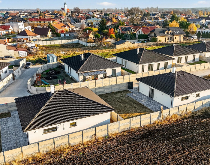 RODINNÝ DOM: Dispozične veľmi dobre riešený samostatne stojaci bungalov bol postavený v roku 2025 a aktuálne prebieha kolaudácia tohto rodinného domu. Dom je postavený z kvalitných materiálov. Obvodové murivo a vnútorné priečky pálená tehla, plastové okná s izolačným 3 sklom, betónová škridla, zateplenie 20 cm polystyrén odvodové murivo, strecha je zateplená striekanou izoláciou. Laminátové parkety, dlažba, obklad, sanita, interiérové dvere so zárubňami, kuchynská linka bez spotrebičov. Predpríprava na klimatizáciu a vonkajšie elektrické žalúzie.