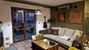 V jedálenskej časti je klimatizácia. V celom dome je elektrické podlahové kúrenie, ktoré zabezpečuje komfort počas celého roka.
