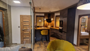 Dom pozostáva z kuchyne spojenej s obývacou izbou, kúpeľne so sprchovým kútom, samostatného WC a spálne so šatníkom.