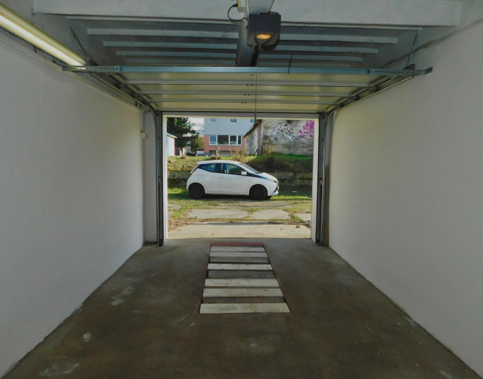 Garáž má výmeru 18 m² a nachádza sa v areáli s radovými garážami. Disponuje okrem plechovej brány aj elektrickou bránou. Garáž disponuje elektrickou prípojkou, pričom je tu aj možnosť nabíjania elektromobilu. Súčasťou je taktiež servisná jama, ktorá je ideálna pre údržbu vozidla alebo menšie opravy.