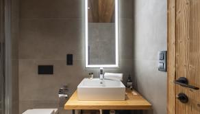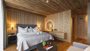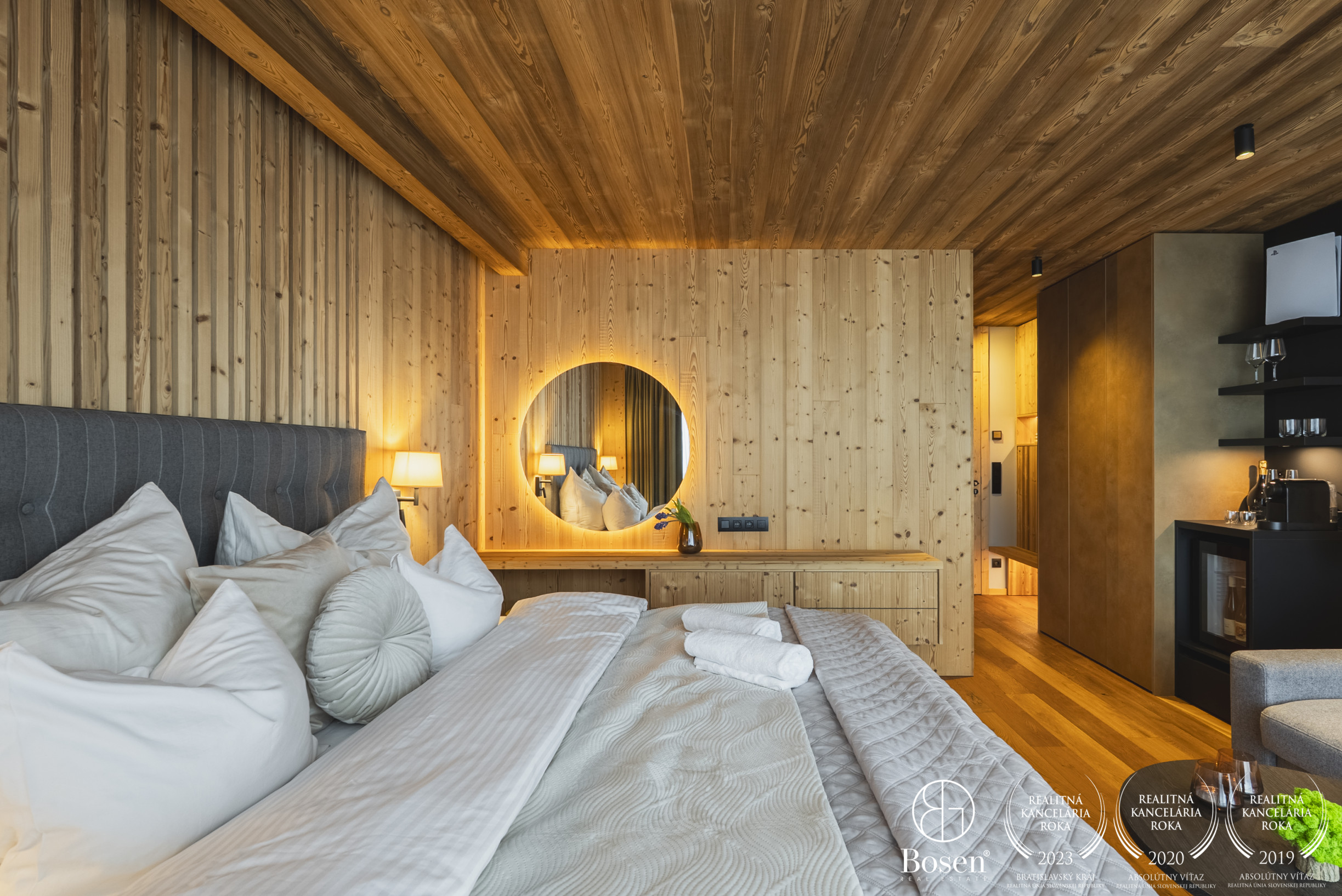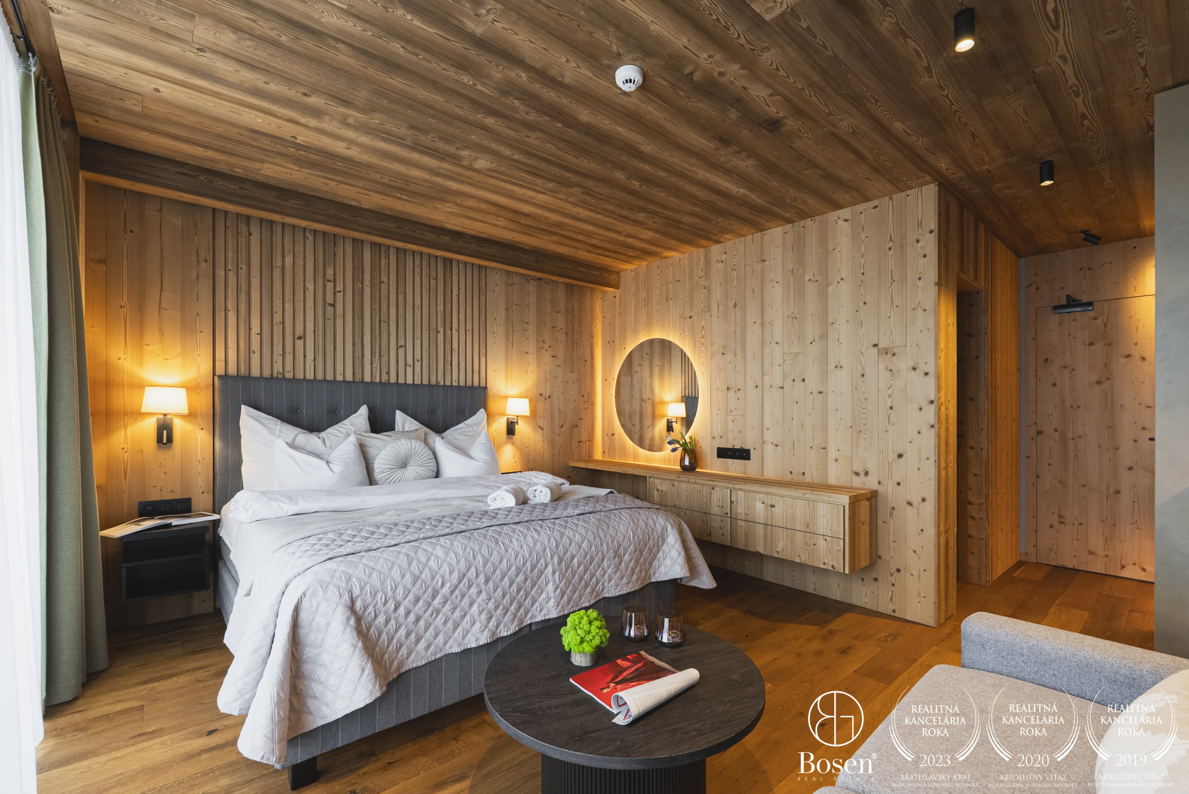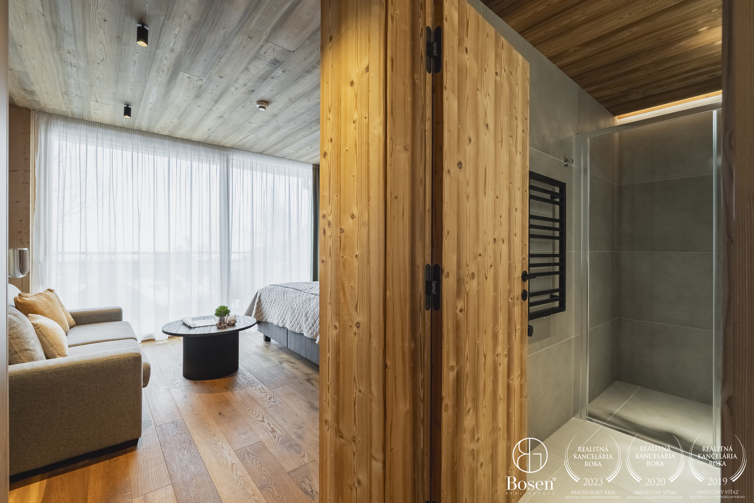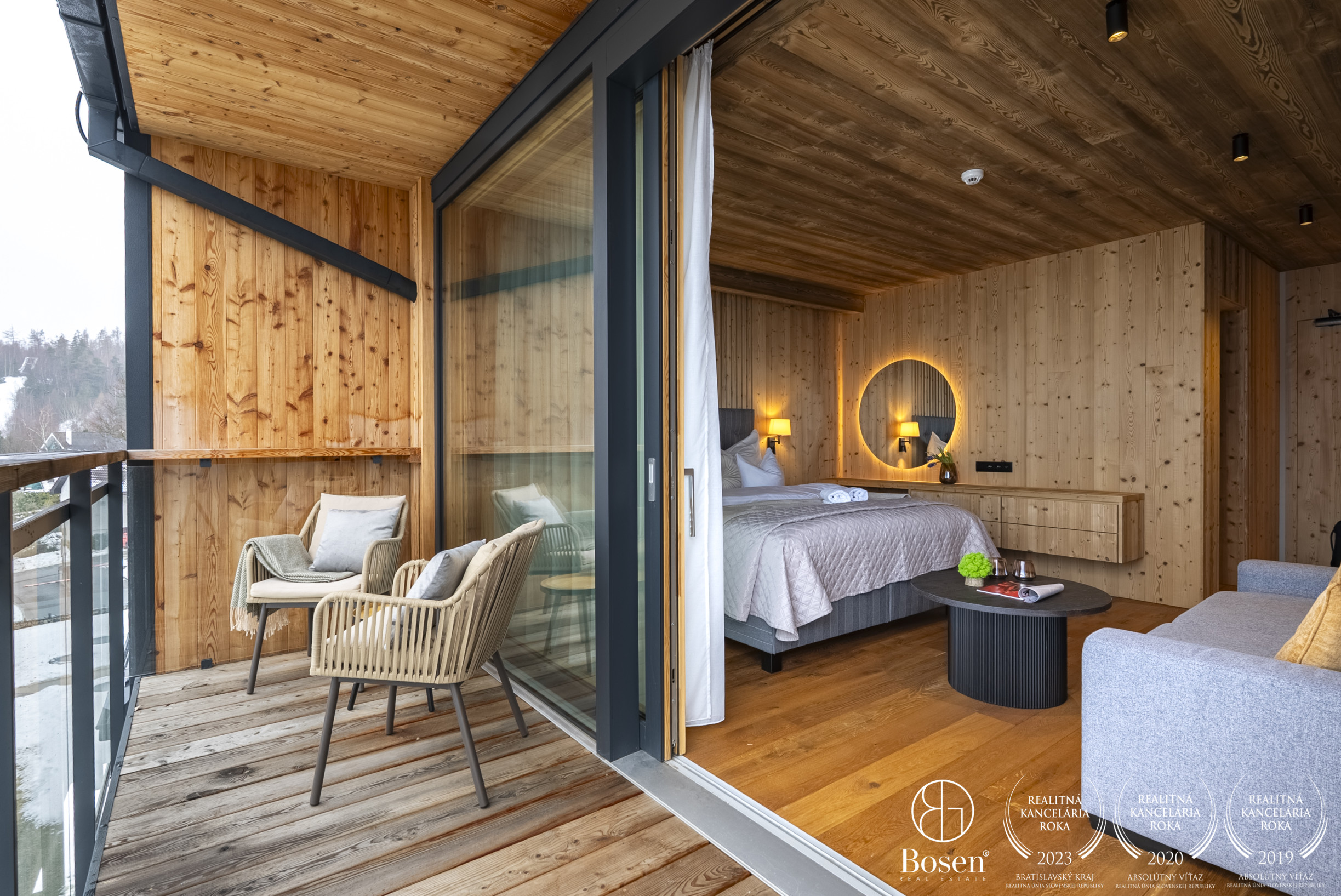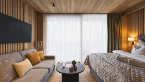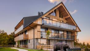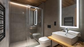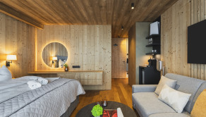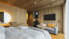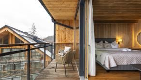 APARTMÁN: Celková výmera apartmánu je 33,3 m² vrátane priestranného krytého balkóna. Vďaka polohe na najvyššom podlaží ponúka nerušené výhľady, maximálne súkromie a jedinečnú atmosféru horského útočiska. Interiér prepája moderný alpský štýl s nadčasovou eleganciou. Technické parametre: podlahy olejovaný a kartáčovaný dub, drevo-hliníkové okná s trojsklom, obklady stien a stropov z pigmentovaného a olejovaného smreku, LED osvetlenie, otváranie chipom v celom rezorte, podlahové kúrenie s možnosťou regulovania na diaľku, veľkoformátová dlažba.