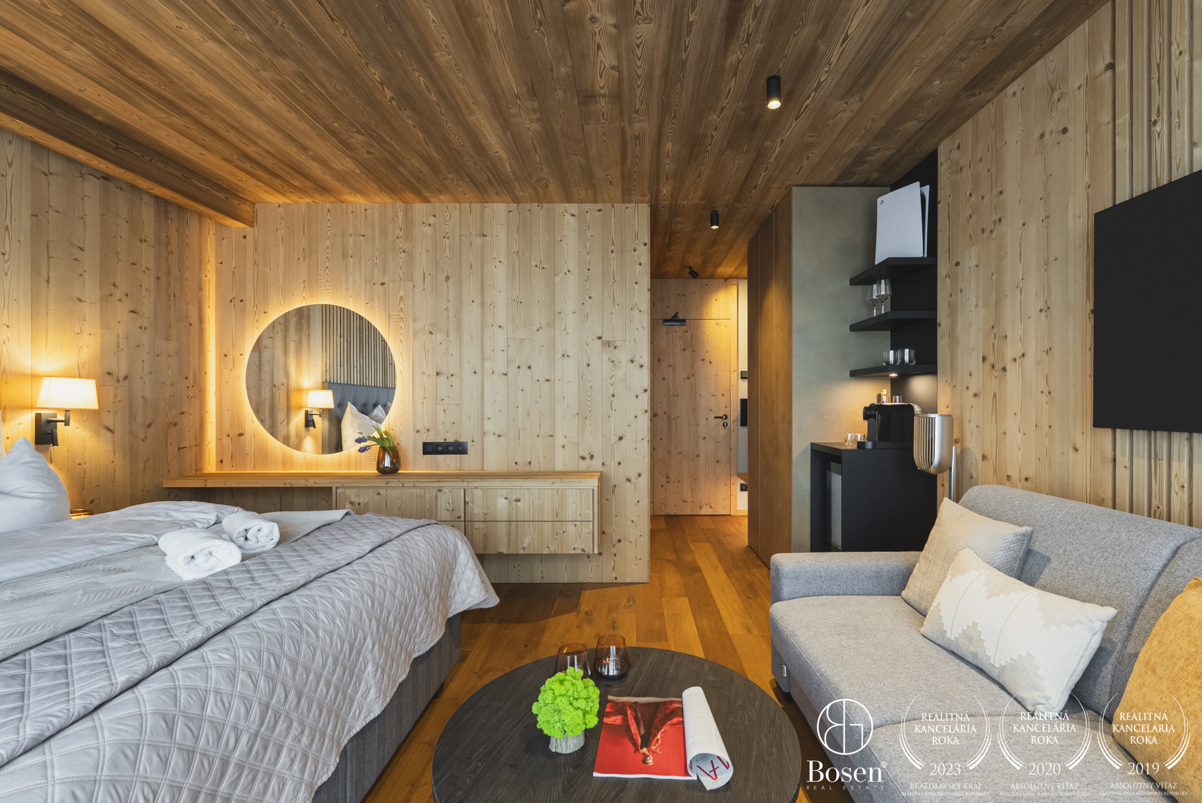 Realitná kancelária Bosen Group Vám ponúka na predaj exkluzívny 1 izbový apartmán s balkónom v prémiovom rezorte priamo pri lanovke na Skalnaté pleso v srdci Tatranskej Lomnici.