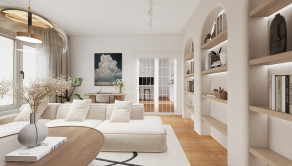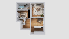 DISPOZÍCIA: Zo vstupnej chodby sa po ľavej strane nachádza výstup na balkón orientovaný do vnútrobloku. Na pravej strane je vstup do hlavnej miestnosti, ktorá je podľa vizualizácie navrhnutá ako kuchyňa s plynulým prepojením do priestrannej obývacej izby. Z hlavnej chodby sa po ľavej strane nachádza samostatné WC spolu s technickou miestnosťou, ktorá je ideálna na umiestnenie práčky a sušičky. Priamo zo vstupnej chodby sa vstupuje do spálne, z ktorej je plynulý prechod do kúpeľne.