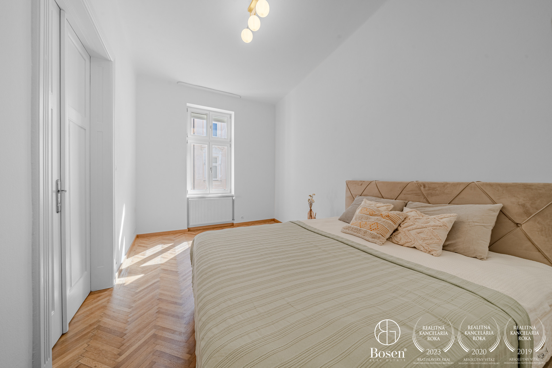 Bosen Group Vám ponúka na prenájom kompletne zrekonštruovaný 4,5 izbový byt s vysokými stropmi, v centre Bratislavy - na Heydukovej ulici.